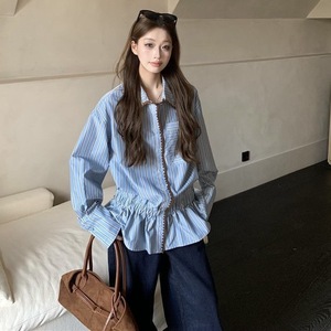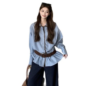 韩系设计感撞色条纹长袖衬衫上衣女早秋小众别致宽松chic气质衬衣