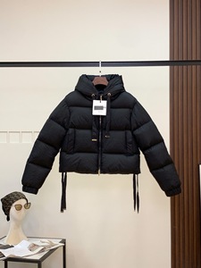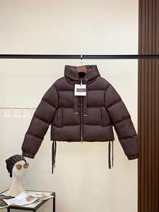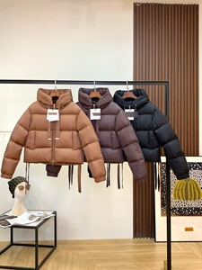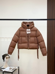 max家短款连帽羽绒服女士尼龙面料纯色咖色欧美高端加厚冬季夹克