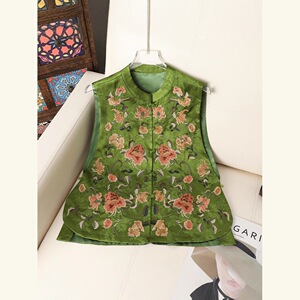 重工绣花国风马甲女改良唐装坎肩气质立领背心秋装新中式马夹批发