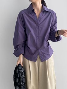 那末韩系通勤气质紫色收腰衬衫女V领显瘦抽褶宽松衬衣含披肩Q2127