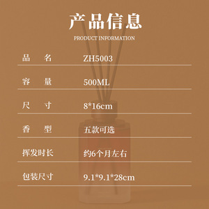 500ML四方香薰瓶经典无火藤条挥发瓶精油扩香玻璃高级感家用持久