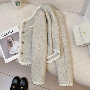 米灰色花边拼接小香风短外套女2025新款春季气质时尚超好看上衣潮
