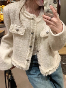矜贵玛德琳米白色小香风外套女2025春秋高级感气质短款上衣