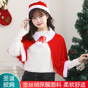 儿童圣诞老人服装红色金丝绒成人圣诞斗篷派对演出连帽披肩服饰