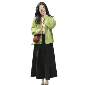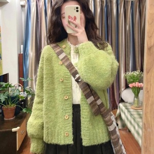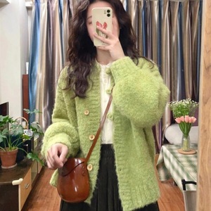 软糯感毛茸茸牛油果绿毛衣厚外套女冬季超好看圈圈绒针织开衫