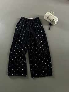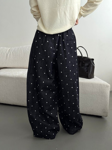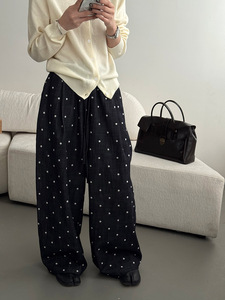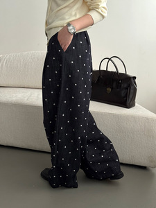黎诺秋季新款提花点点休闲裤女2025小众抽绳设计直筒牛仔裤女潮流