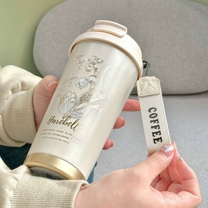 时尚铃兰咖啡杯卡通不锈钢保温杯 高颜值车载便携吸管水杯礼品网