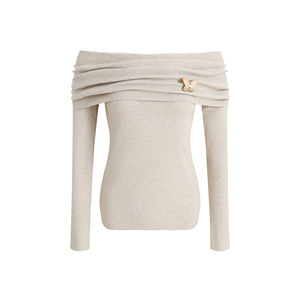 ELEVEN SLEEP秋季蝴蝶扣一字肩针织衫女修身显瘦辣妹风长袖打底衫
