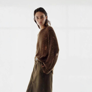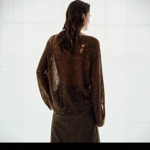 【商场同款】25秋季新品全羊毛镂空破洞设计感微透针织衫上衣女