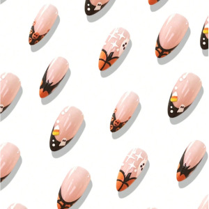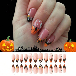 24片中长尖甲万圣节南瓜幽灵蝙蝠穿戴甲美甲贴片