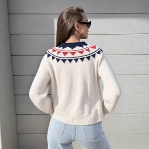 复古费尔岛毛衣开衫女秋冬新款跨境女装圆领宽松百搭软糯针织外套