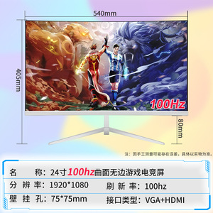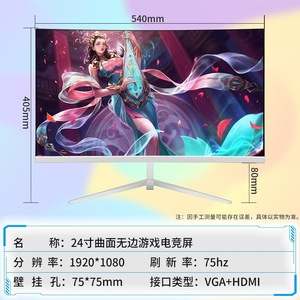 24英寸曲面白120hz+无边框 dp+hdmi-标配