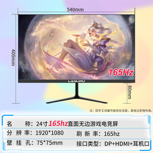 24英寸直面黑165hz+无边框 dp+hdmi-标配