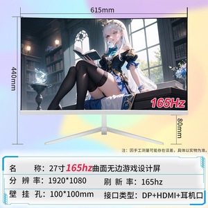 27英寸曲面白165hz+无边框 dp+hdmi-标配