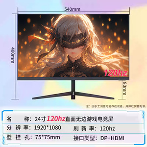 24英寸直面黑120hz+无边框 dp+hdmi-标配