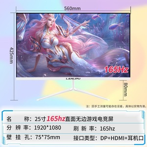 25英寸直面白165hz+无边框 dp+hdmi-标配