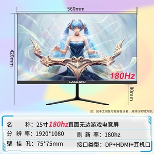 25英寸直面黑180hz+无边框 dp+hdmi-标配