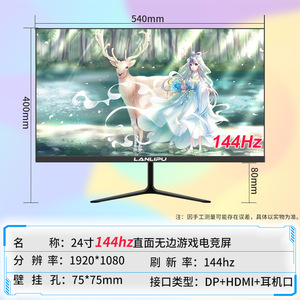 24英寸直面黑144hz+无边框 dp+hdmi-标配