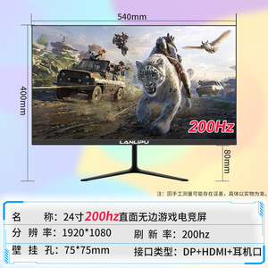 24英寸直面黑200hz+无边框 dp+hdmi-标配