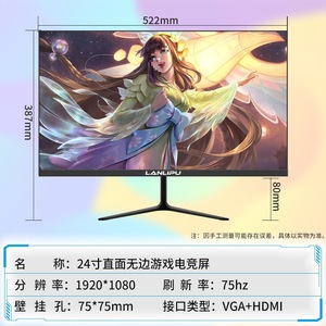 24英寸直面黑180hz+无边框 dp+hdmi-标配