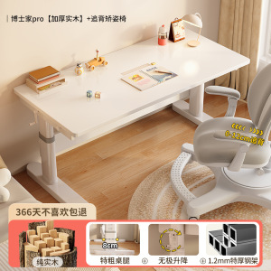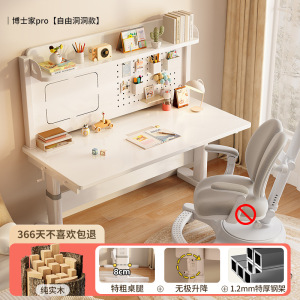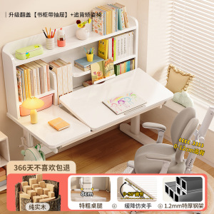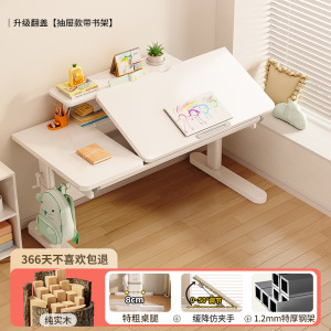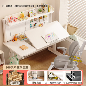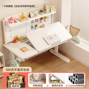 睢园儿童学习桌小学生家用大白写字桌课桌椅套装手动升降实木书桌