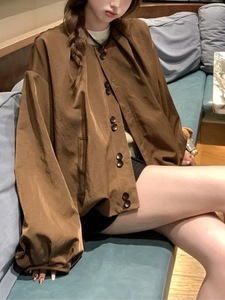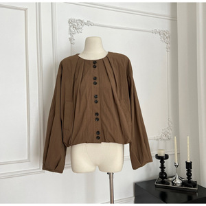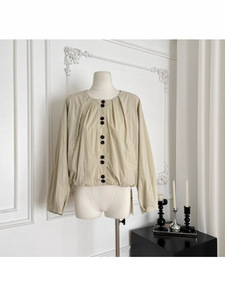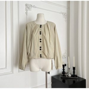 香港明日 小众风格花苞外套通勤百搭圆领夹克上衣女秋季
