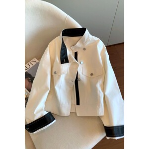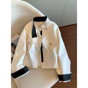2025秋季新款撞色拼接立领夹克上衣韩版复古百搭宽松休闲短款外套