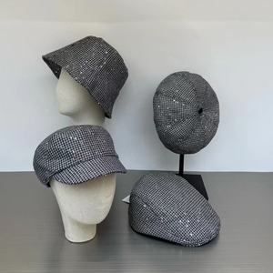小香风亮片前进帽八角帽水桶帽渔夫帽秋季新款显脸小画家帽蓓蕾帽