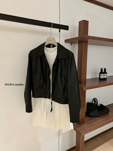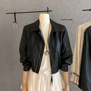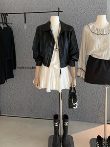 WGWE 7146#广州十三行女装2025秋装新款黑色夹克短款拉链港风皮衣