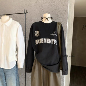 【WGWE】7107#广州十三行女装2025早秋装新款水洗做旧圆领长袖T恤