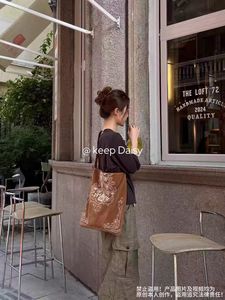 柏雪推荐【西部异域】进口环保麂皮钩花托特包刺绣民族风购物袋包