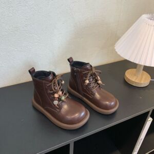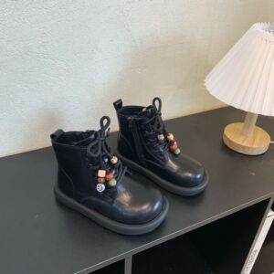 儿童皮靴2025秋季新款男童复古串珠马丁靴女童时尚百搭休闲时装靴