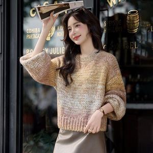 慵懒风渐变色套头毛衣女2025秋冬新款韩系软糯宽松短款针织衫上衣