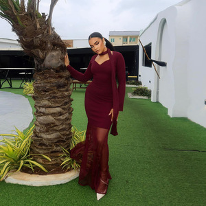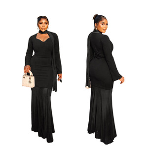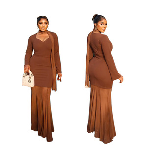 ZY6321 欧美独立站TEMU飘带围脖长袖修身包臀连衣裙网纱鱼尾礼服