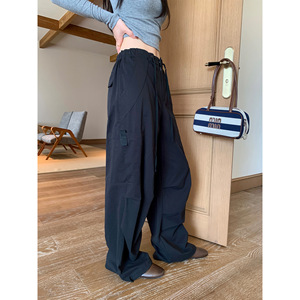 pusumede 克莱蒙公路 美式高腰阔腿工装裤女休闲松紧直筒长裤子
