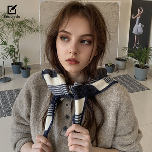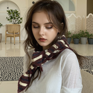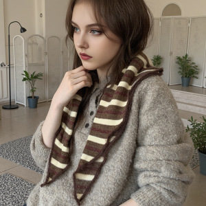 韩版简约条纹针织毛线围巾女秋冬加厚保暖情侣拼色围脖潮