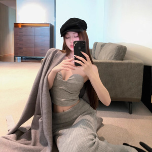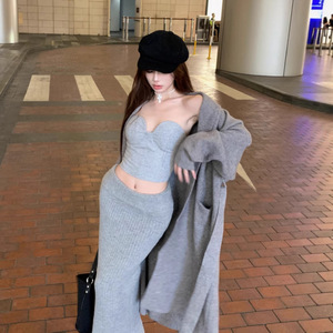 RHGD实拍2025格雷系列/秋冬设计感抹胸上衣+翻边半身裙外套套装