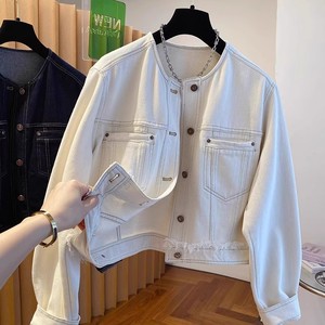 圆领牛仔外套女短款2025春装新款宽松休闲百搭通勤明线小个子上衣