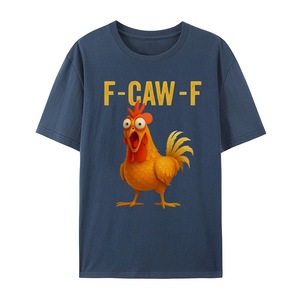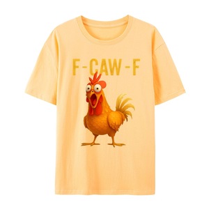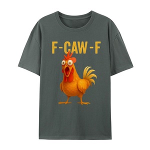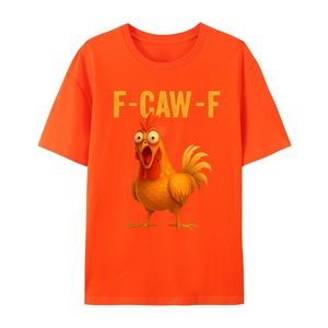 跨境新款有趣的公鸡印花F-Caw-F运动纯棉休闲大码T恤男女同款