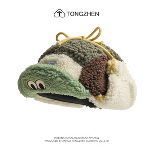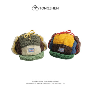 冬季户外拼色防寒羊羔绒棒球帽子加绒保暖防风滑雪运动护耳帽男女