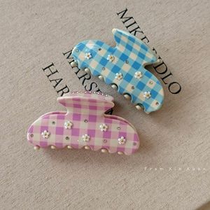 小清新格纹花朵镶钻醋酸抓夹2025新款气质盘发鲨鱼加百搭发卡发饰
