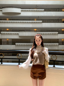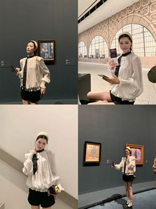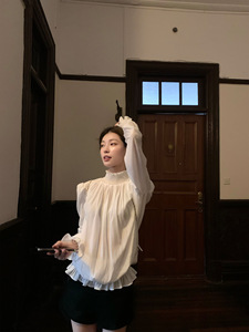 SourceWithU 纯白美学 早秋bi备温柔简约花瓣袖奶白长袖衬衫上衣