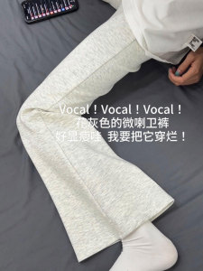 白灰色运动微喇裤女2025新款秋季小个子垂感休闲喇叭裤直筒卫裤子