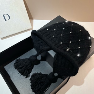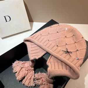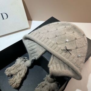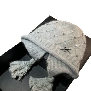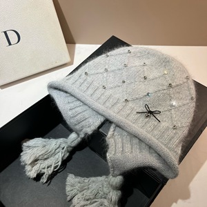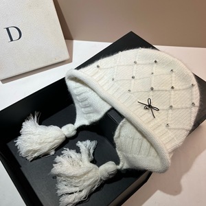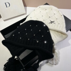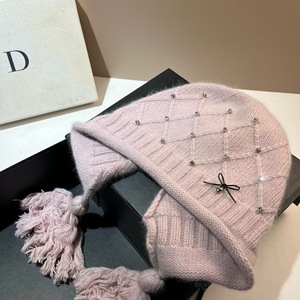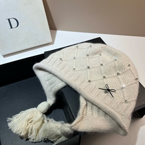 安哥拉兔毛软糯护耳帽俄罗斯冬季保暖兔绒针织帽水钻蝴蝶结包头帽
