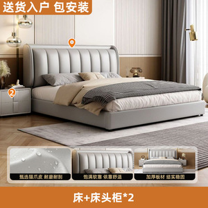 意式轻奢皮床1.5米家用卧室1.8米简约现代主卧软包双人床豪华婚床