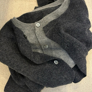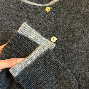 深灰色假两件针织开衫毛衣女秋宽松软糯薄款外套正肩内搭打底上衣