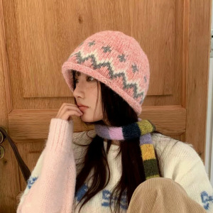复古提花针织渔夫帽女秋冬费尔岛风保暖套头帽显脸小护耳毛线帽子