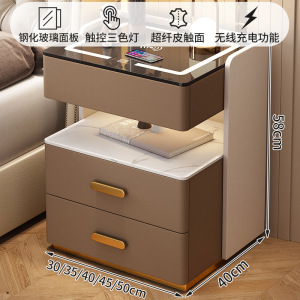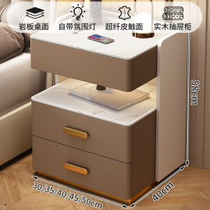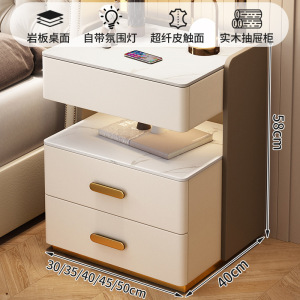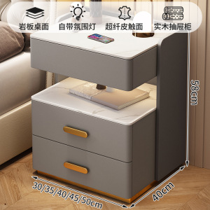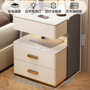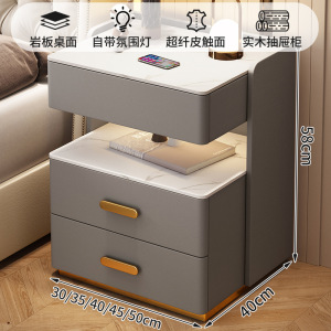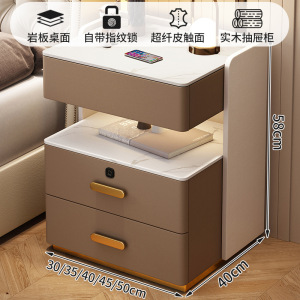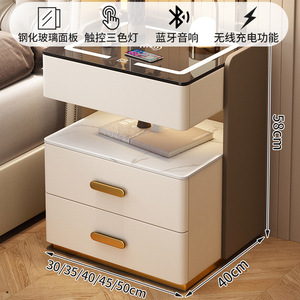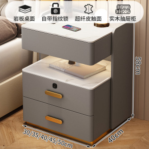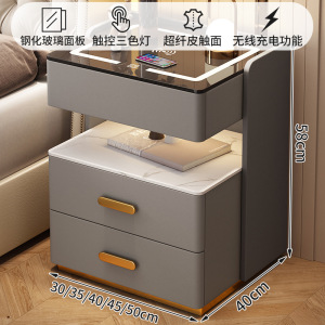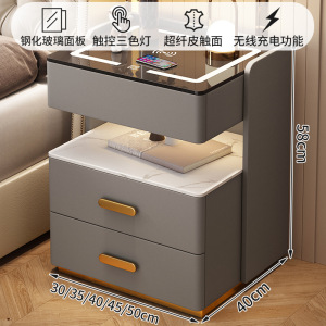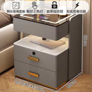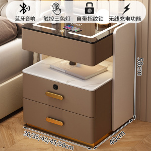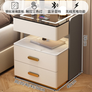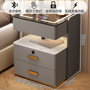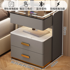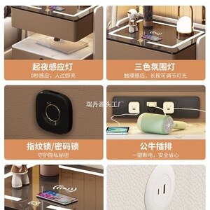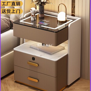 智能床头柜简约现代感三抽轻奢家用卧室床头储物实木收纳柜子