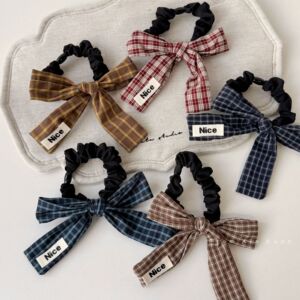 小清新格子蝴蝶结发圈女低马尾头绳扎头发绳皮筋百搭丸子头饰头花