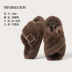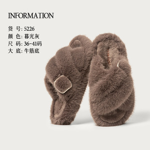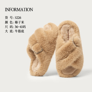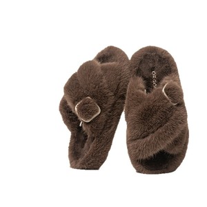 远港勃肯棉拖鞋女秋冬天居家室内厚底防滑办公室交叉毛毛拖鞋冬季